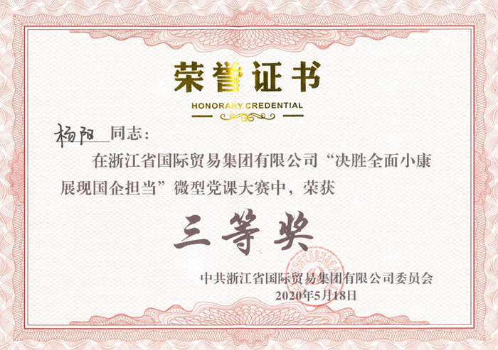 5月18日下午,省國貿(mào)集團(tuán)第四屆微型黨課大賽在19樓會議廳隆重舉行,來自各成員公司的19名參賽選手緊緊圍繞“決勝全面小康、展現(xiàn)國企擔(dān)當(dāng)”的主題,結(jié)合不同崗位、不同業(yè)態(tài)、不同角度,從細(xì)微處談起,從個(gè)人閱歷談起,從公司發(fā)展談起,從理想信念談起,或表達(dá)奮斗心聲,或介紹身邊典型,或抒發(fā)祝福情感,用“演”與“講”的才情與智慧,讓現(xiàn)場觀眾備受鼓舞,喚起了大家的思考與共鳴,得到了專家評委們的高度肯定,我公司參賽選手楊陽最終榮獲大賽三等獎。
