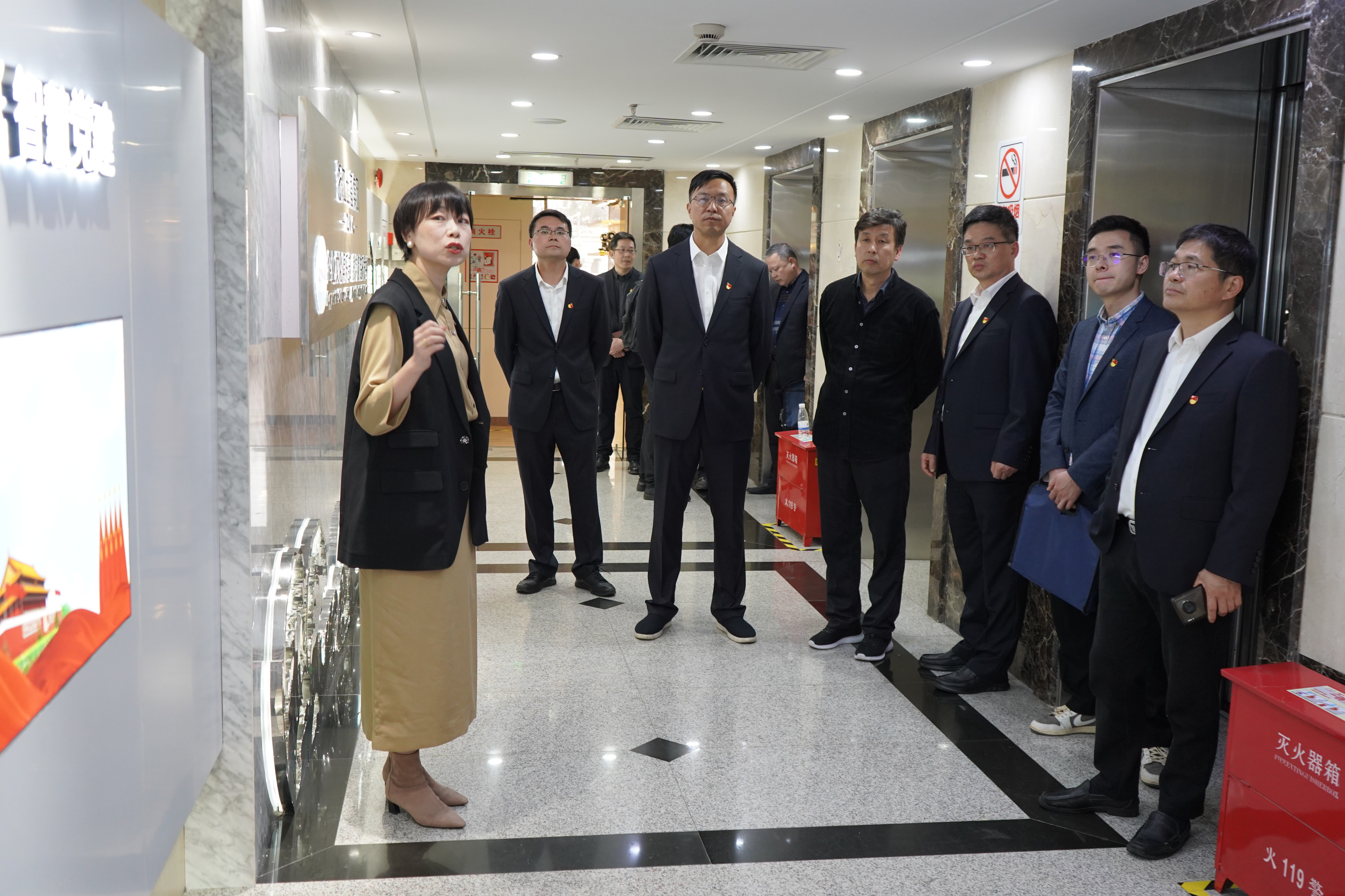 會(huì)前,許尚金書記對(duì)土畜大樓進(jìn)行了安全檢查,并參觀了公司企業(yè)文化俱樂部和數(shù)字服裝中心。